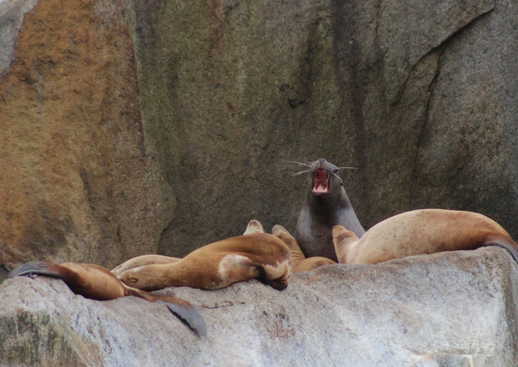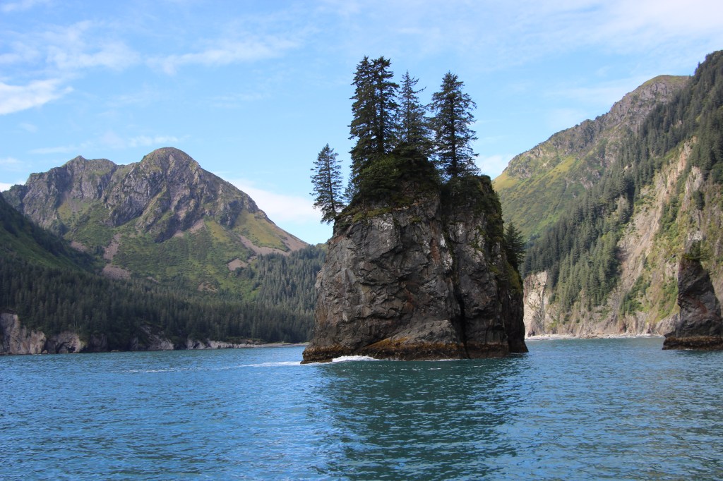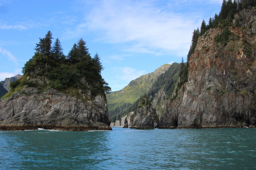 We were able to pull right up to the front of the Aialak Glacier. It was awe inspiring as we listened to the thunderous noise of the glacier when it moves. We saw some pieces fall off into to Seanad could hear it melting in the ocean with crackles and pops. In addition to the glaciers , we saw many interesting island and rock formations. While the whales were not to be found, we saw an abundance of wildlife , including Stellar Sea Lions, Harbor Seals, Sea Otters, Coastal mountain goats , Bald Eagles , Cormorants and Puffins, even a black bear very high up on a ledge! ! My camera was turned on constantly!
